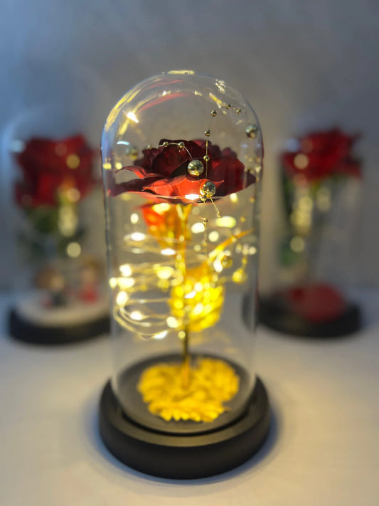 Zlatna svetleća ruža u staklenom zvonu - romantični poklon za svaku priliku
