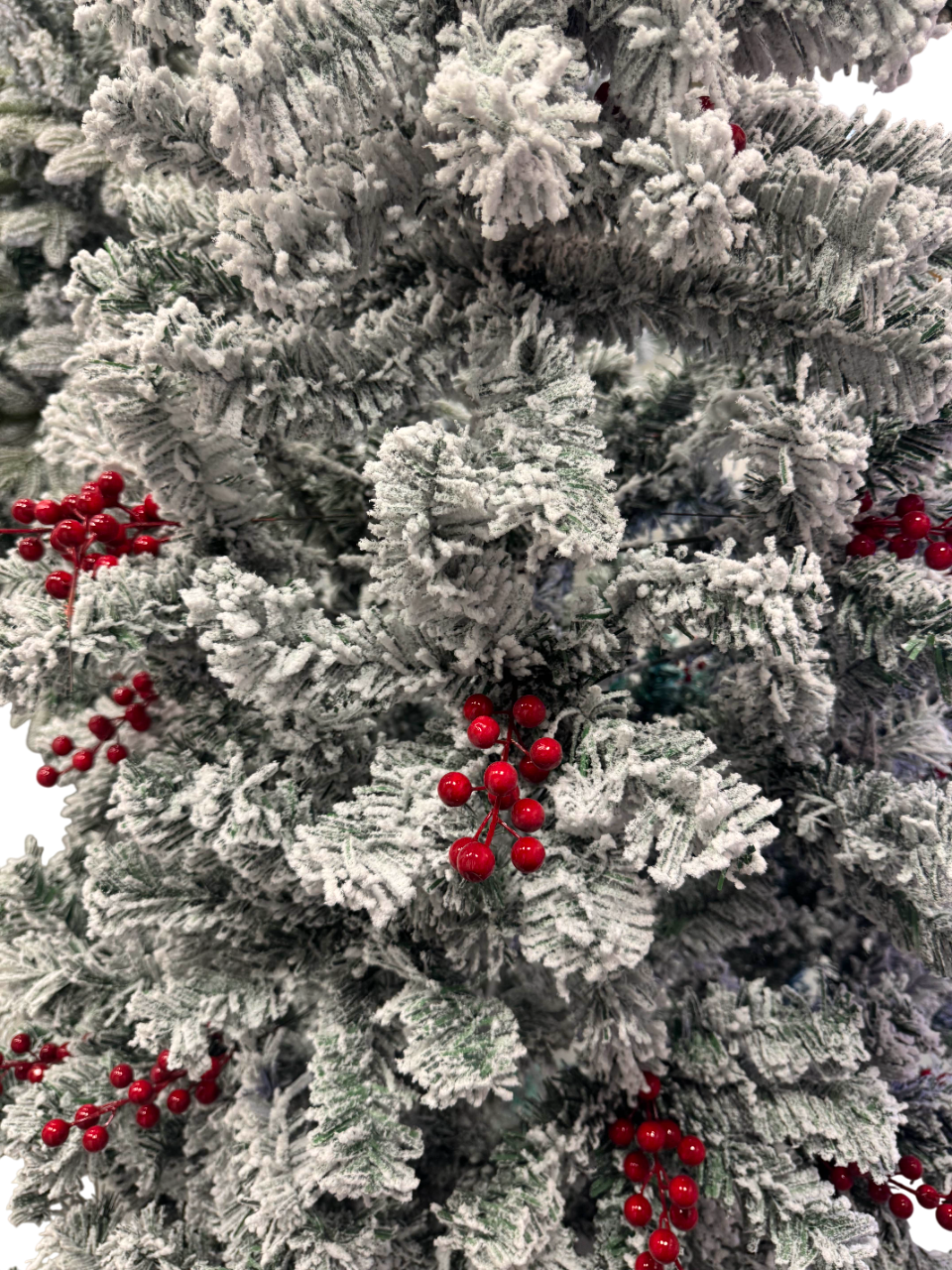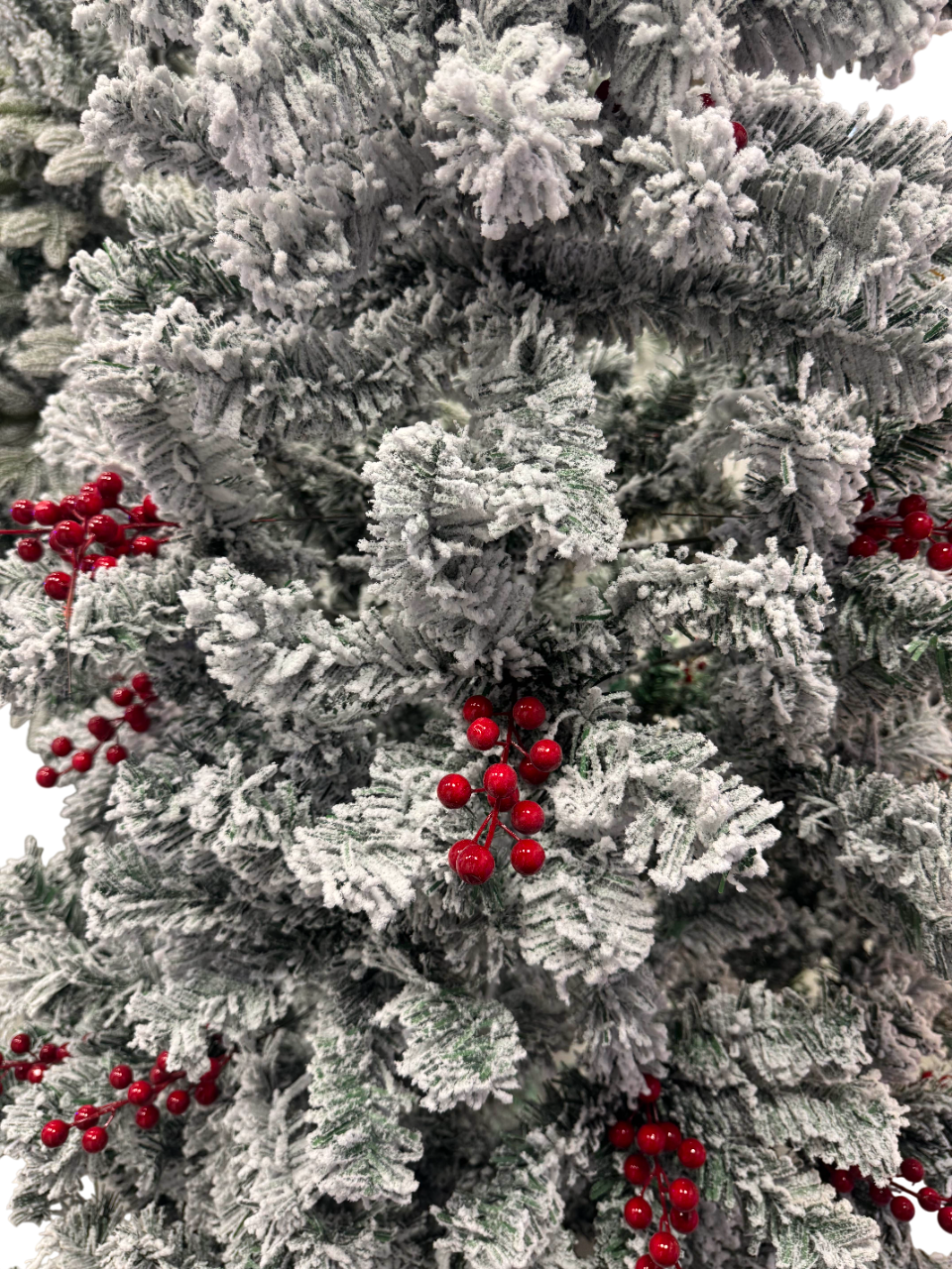 Unesite prazničnu čaroliju u svoj dom uz novogodišnju jelku Winter Berry – bujnu i gustu jelku sa pravim granama, potpuno prekrivenu zavejanim snegom i ukrašenu živopisnim crvenim bobicama. Ova jelka oponaša prirodan izgled planinske jelke i stvara toplu i elegantnu prazničnu atmosferu.