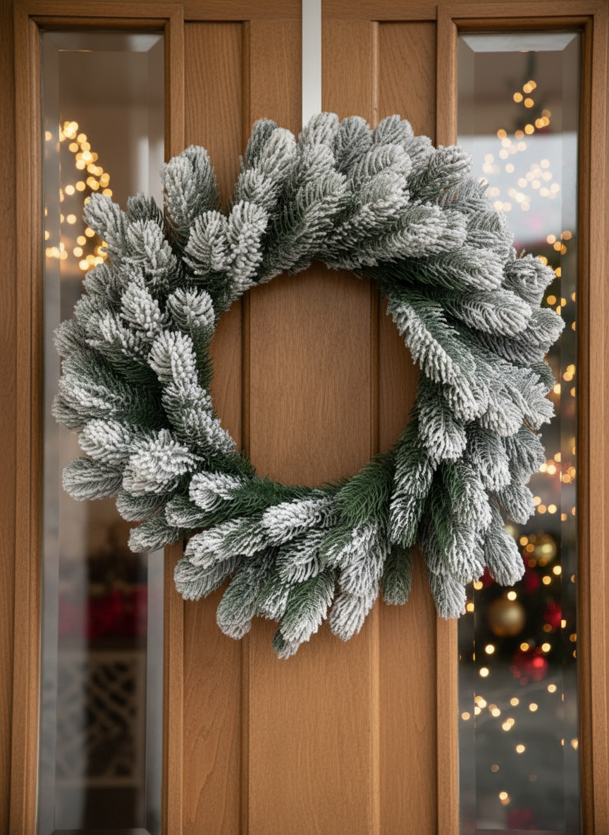 🎄 Frosted Elegance – gusti venac sa diskretnim snegom koji unosi prazničnu čaroliju i toplinu.