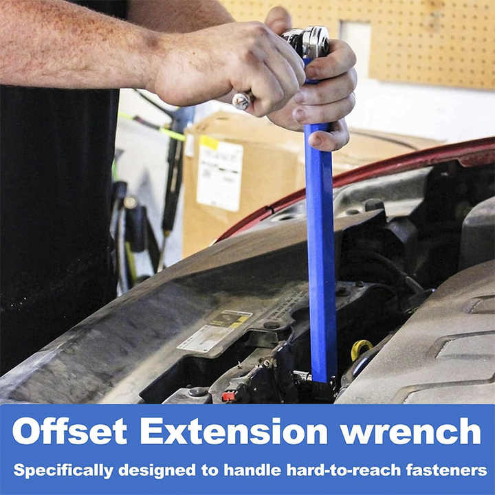 Ugaoni nastavak za gedoru je praktično rešenje za situacije kada standardna račna ne može da priđe zavrtnjima ili maticama zbog ograničenog prostora. Omogućava siguran i precizan rad pod uglom, čineći zavrtanje i odvrtanje jednostavnijim i efikasnijim.