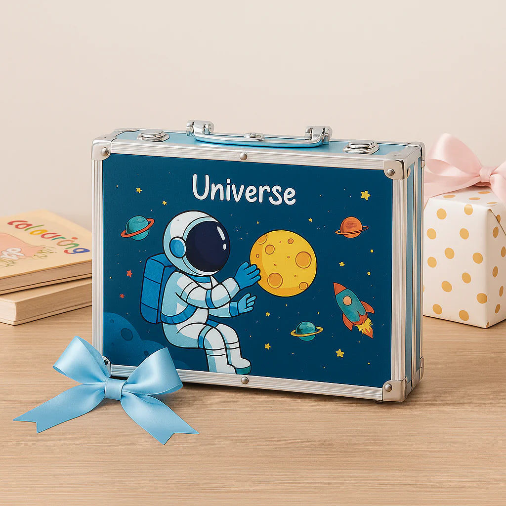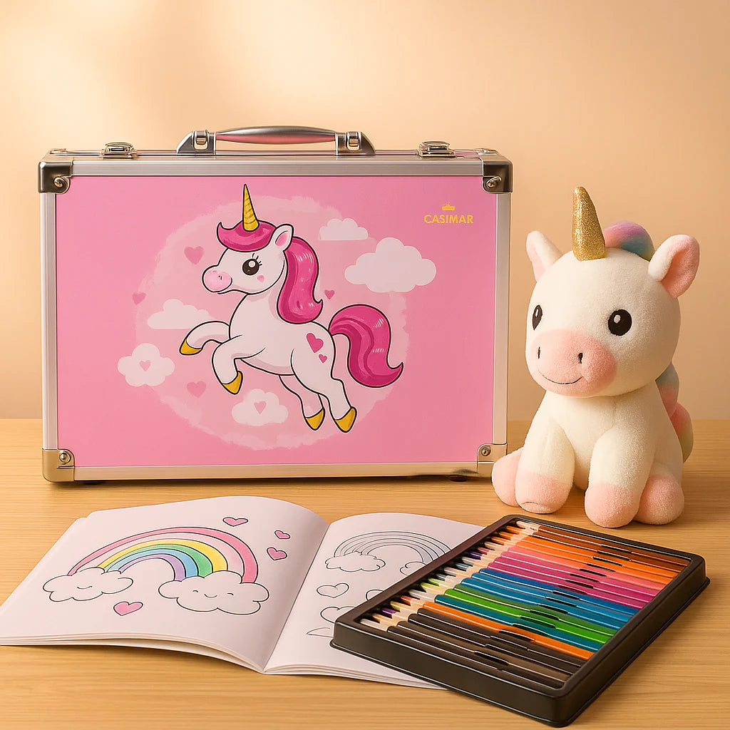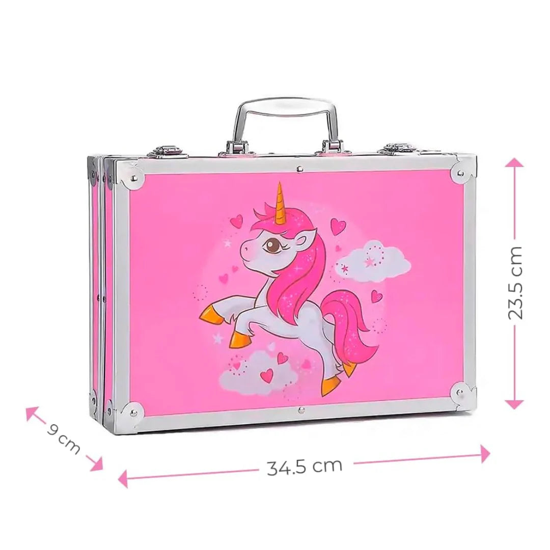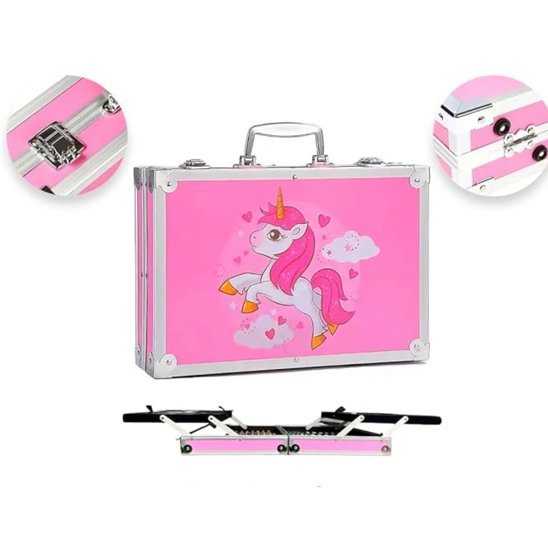 Ovaj metalni kofer je pravi raj za male umetnike! Sadrži 145 različitih umetničkih pribora koji podstiču kreativnost, maštu i razvoj veština crtanja i slikanja. Savršen je poklon za decu koja žele da istraže umetnički svet i izraze sebe kroz boje.